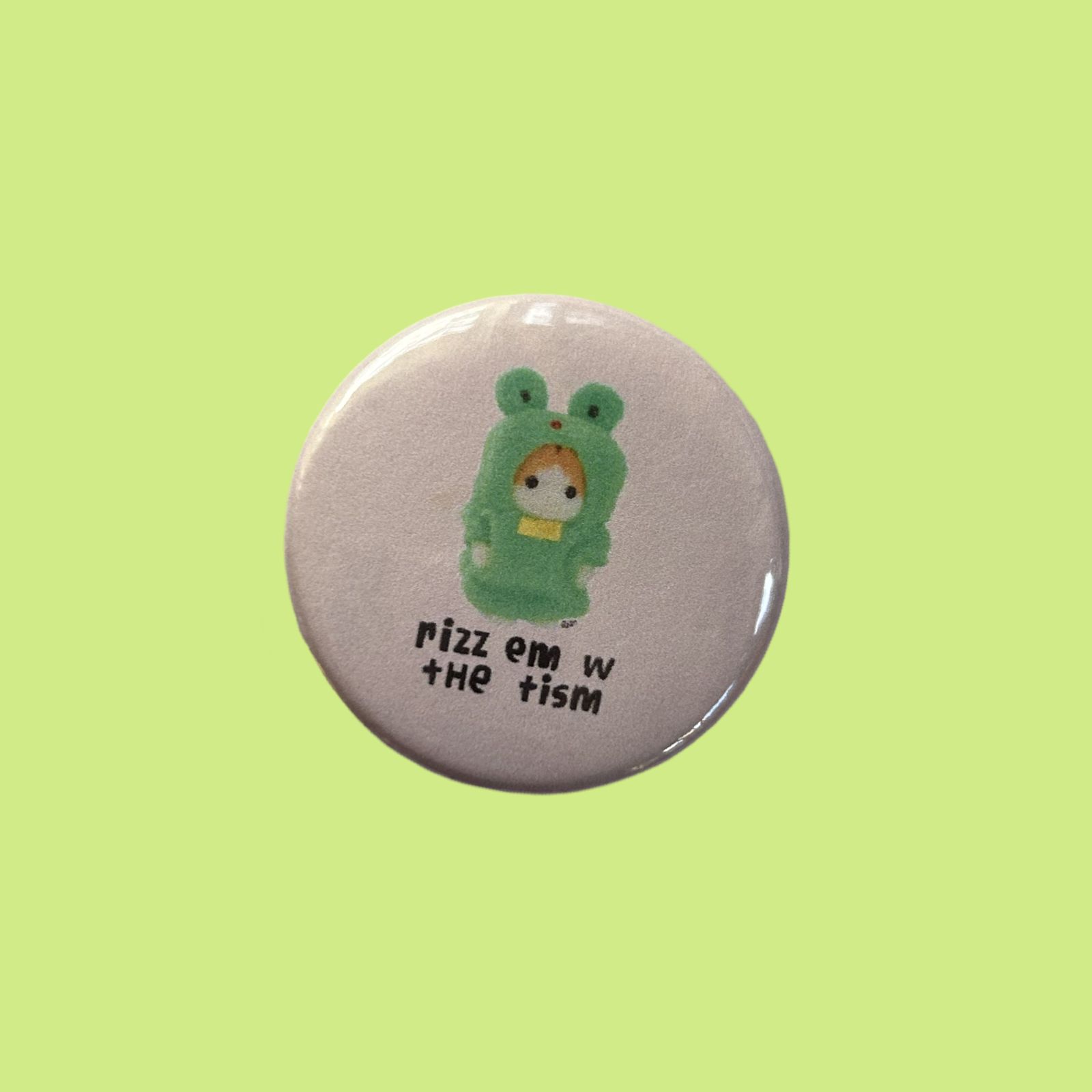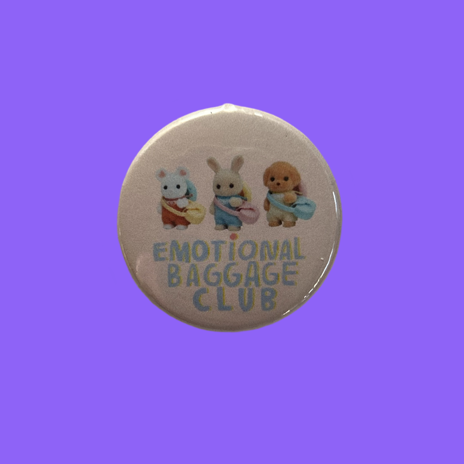 buttons emotional baggage- pinback button get in loser were going to therapy - pinback button baby baddie - pinback button read banned books - pinback button top/bottom - pinback button Always Carry A Balloon- pinback button gay panic- pinback button monogamish- pinback button Rizz Em with the Tism- pinback button Queers for Oatmilk- pinback button Hot Girl Shit- pinback button